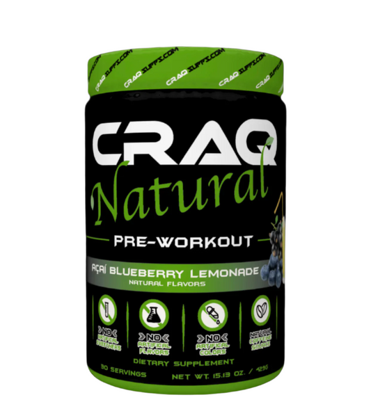 CRAQ Natural Pre-Workout Supplement-Acai Blueberry Lemonade