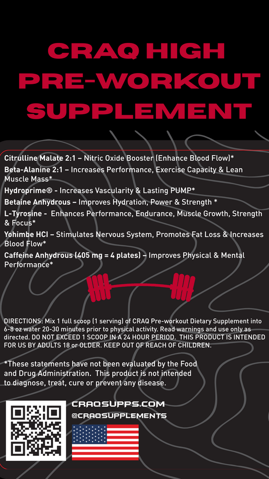 NEW CRAQ HIGH Pre-workout Supplements is for all you High Stim Junkies! Calling all CRAQ Headz this one if for you!!!